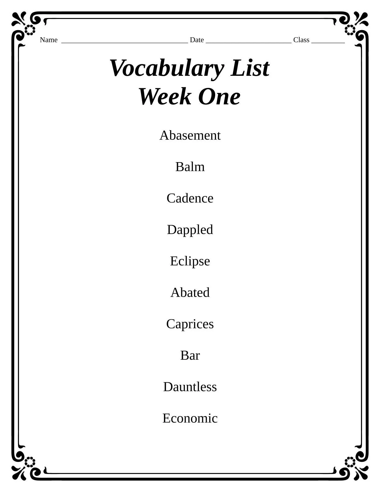Vocabulary Word Lists!